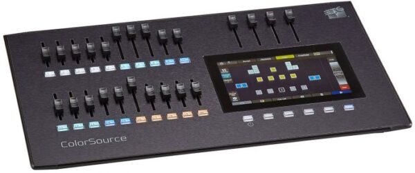 The onboard faders can be used as direct channel controls or as playback faders. For preprogrammed shows, ColorSource consoles include comprehensive cue stack functionality. Assign additional faders as submasters, group masters, or a grandmaster.